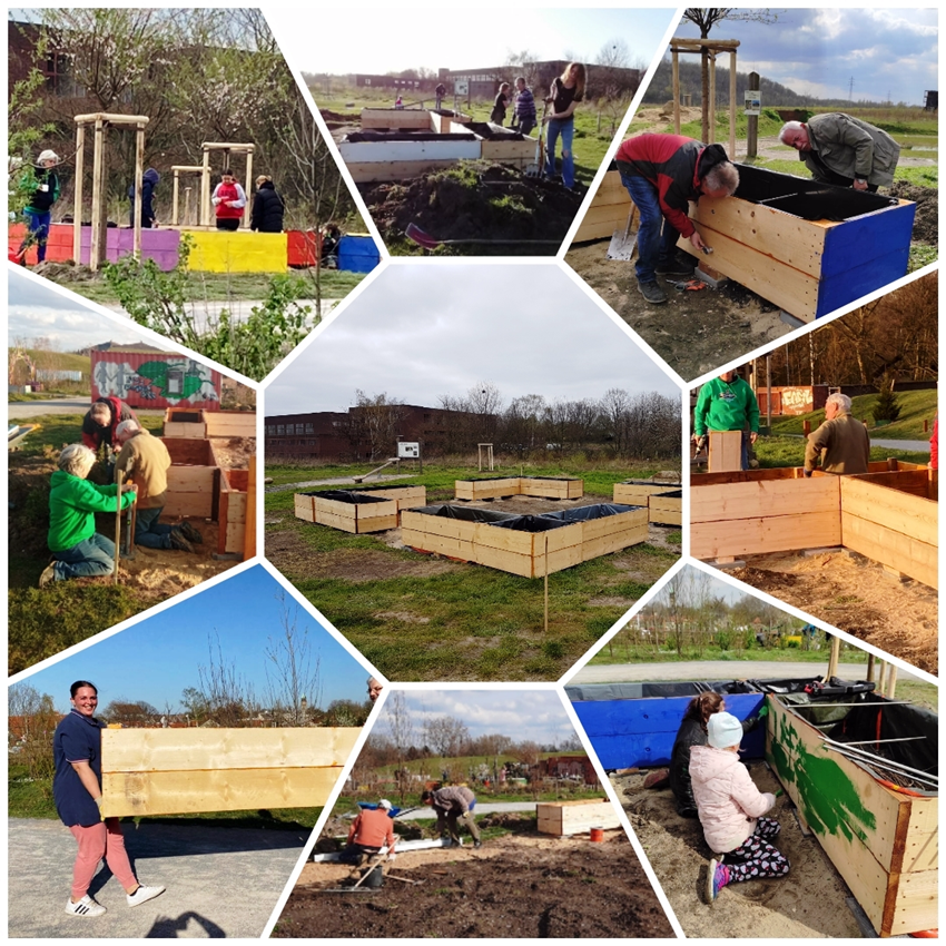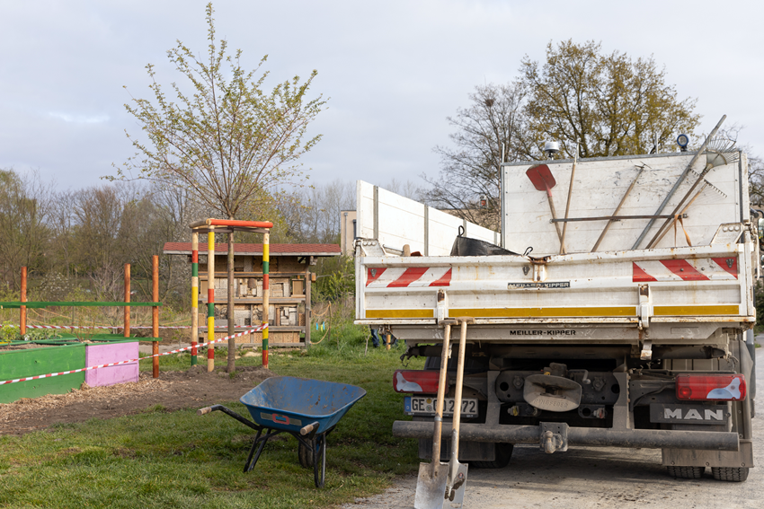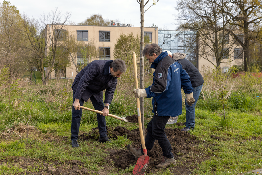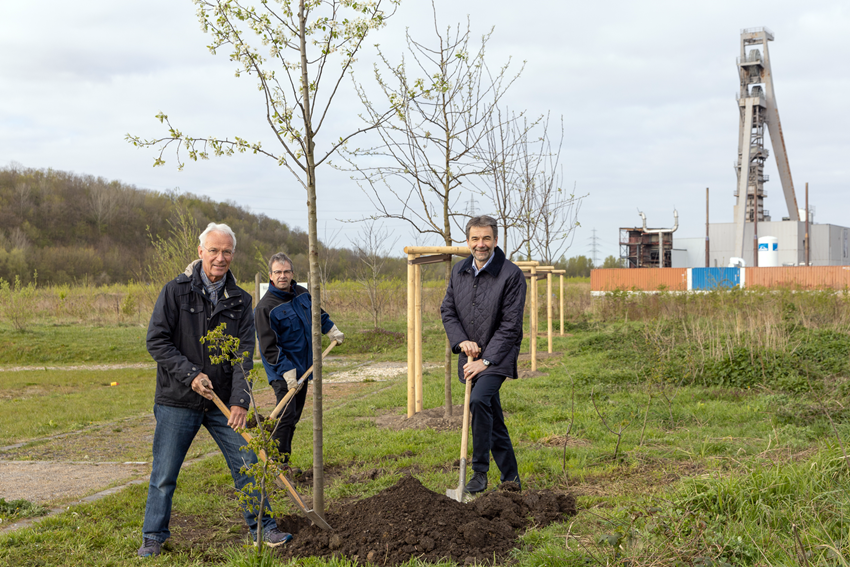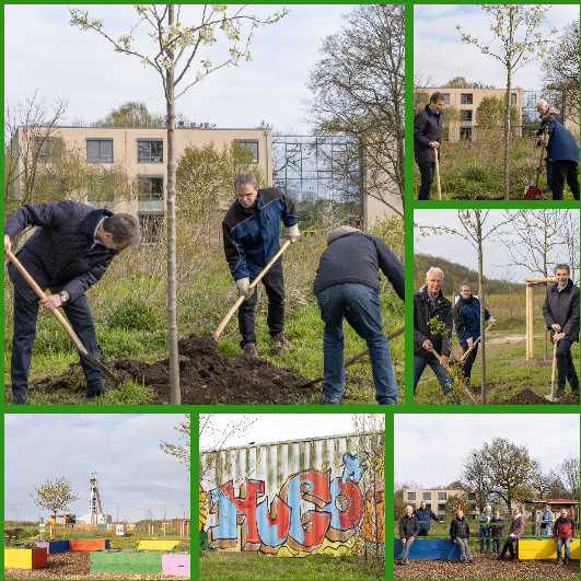 | Baumpflanzaktion im April Die Fotos entstanden am 22. April, an dem die beiden letzten der insgesamt 24 Bäume gepflanzt wurden. Dies wurde durch eine großzügige Spende der Volksbank Ruhr Mitte ermöglicht. Auch die WAZ berichtet darüber. Fotos: Melanie Gmerek | |